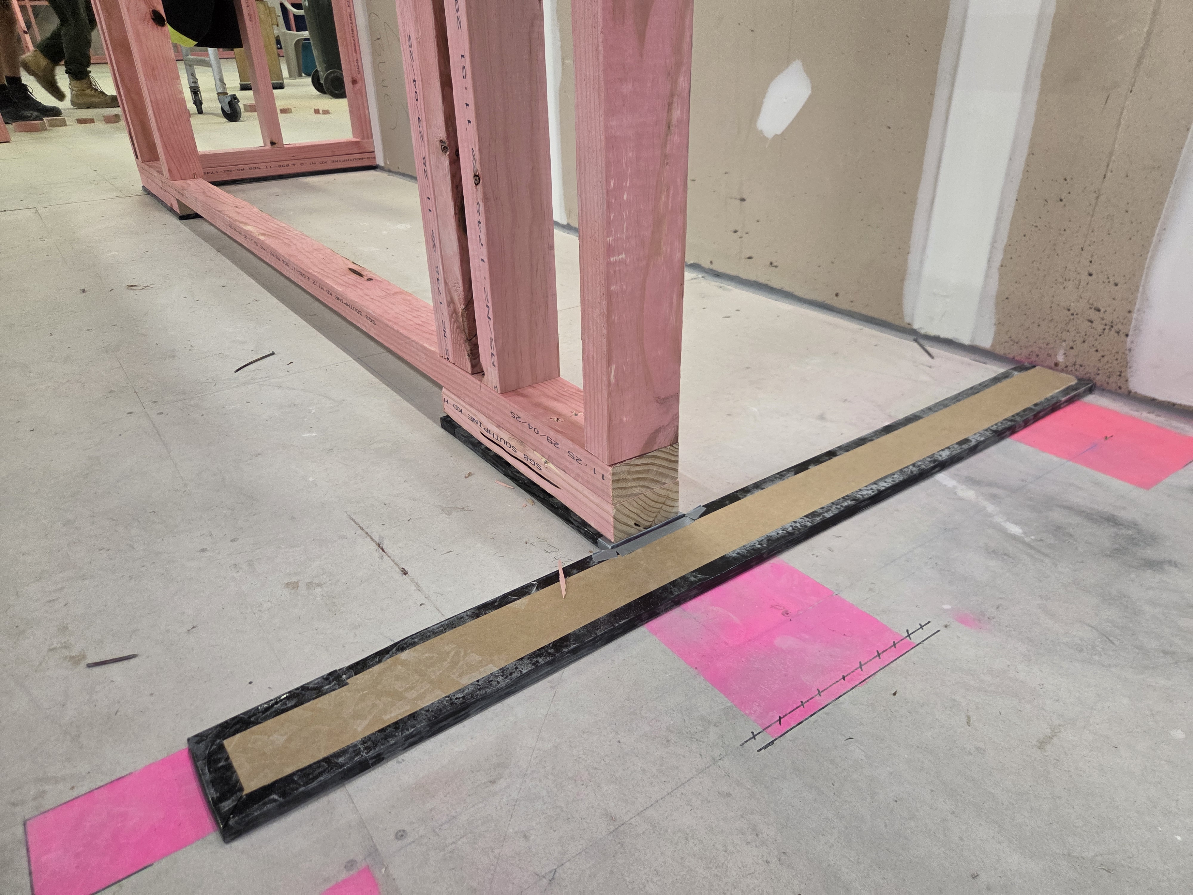 PhoneStrip was specified for installation beneath the timber-framed walls on this project to prevent noise transfer from the floor structure into the walls. Its design enables straightforward on-site installation, with a single product capable of supporting a wide range of loadings due to its unique sand-based construction. This construction dissipates vibration by converting it into kinetic energy through microscopic particle movement, significantly reducing sound transmission.